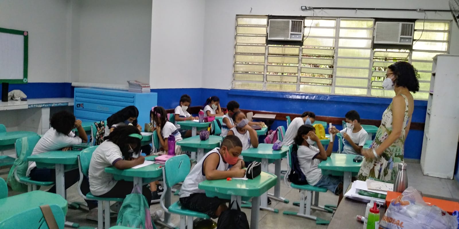 Como cheguei ao Rio à tempo de pegar o finzinho do ano, conseguimos concretizar essa visita. Aí pude conversar com as crianças em cinco grupos diferentes, ver ao vivo alguns dos trabalhos motivados pelo livro e ainda brincamos juntos de criar histórias!