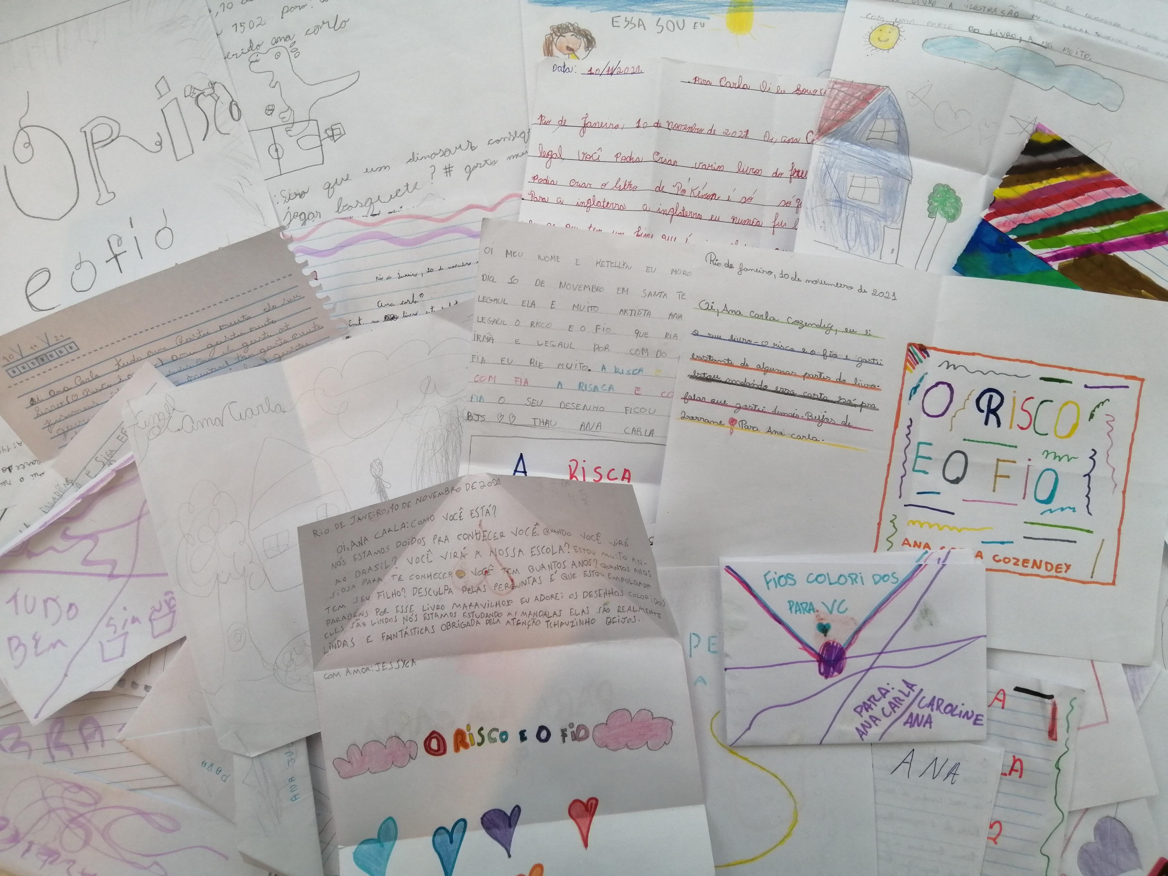 Que alegria ver O Risco e o Fio ainda inspirando as crianças! A iluminada arte educadora, Ana Carolina Cozendey, desenvolveu um lindo trabalho na Escola Municipal Júlia Lopes de Almeida, no Rio de Janeiro, e depois recebi dezenas de cartas carinhosas, com as crianças me convidando para visitá-las.